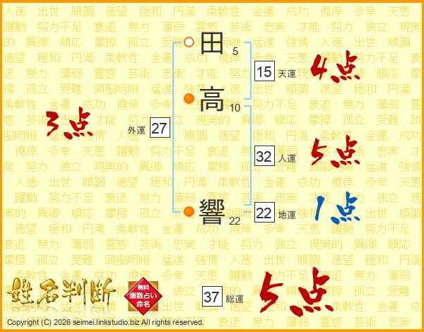 田高響さんの総運は37画の5点!