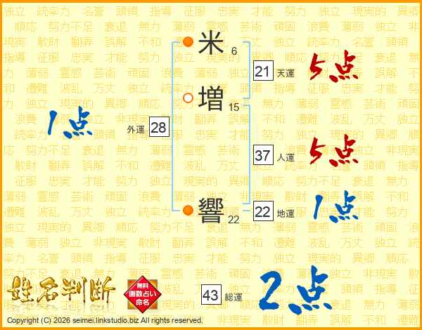 米増響さんの総運は43画の2点!