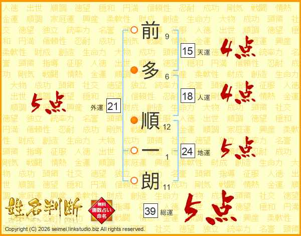 前多順一朗さんの総運は39画の5点!