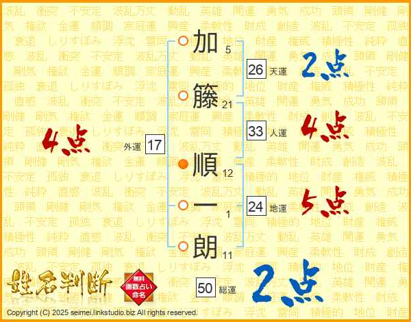 加籐順一朗さんの天運は26画の2点!