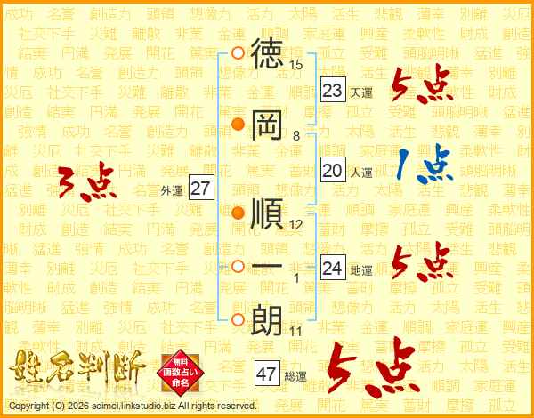 徳岡順一朗さんの天運は23画の5点!