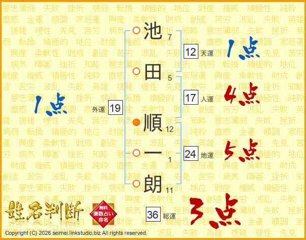 池田順一朗さんの地運は24画の5点!