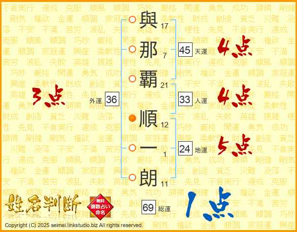 與那覇順一朗さんの天運は45画の4点!