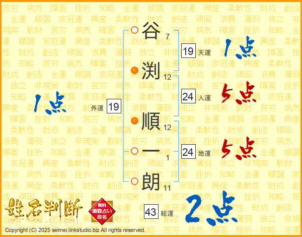 谷渕順一朗さんの総運は43画の2点!