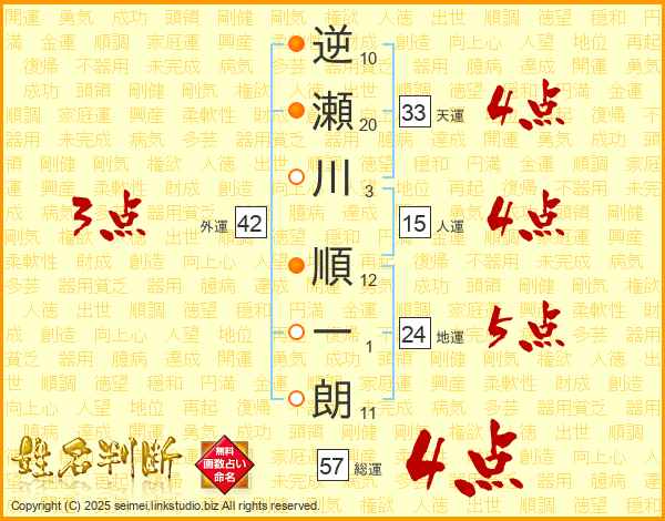 逆瀬川順一朗さんの総運は57画の4点!