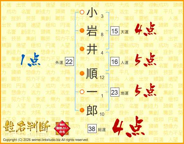 小(3画)岩(8画)井(4画) 順(12画)一(1画)郎(10画)