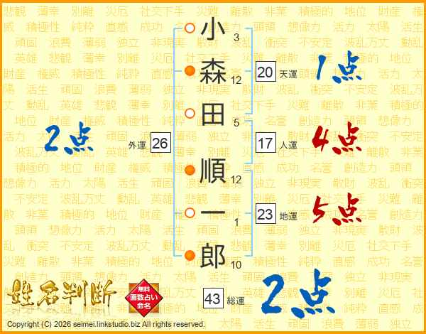 小森田順一郎さんの総運は43画の2点!
