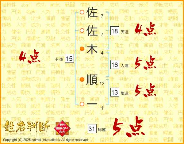 佐(7画)佐(7画)木(4画) 順(12画)一(1画)