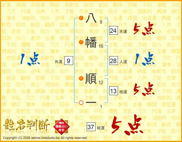 八幡順一さんの総運は37画の5点!