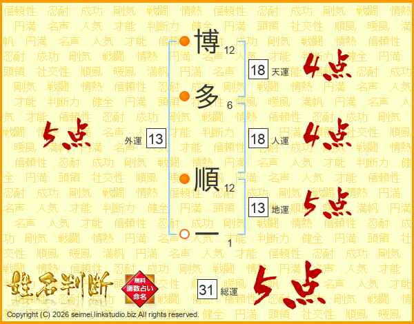 博多順一さんの総運は31画の5点!
