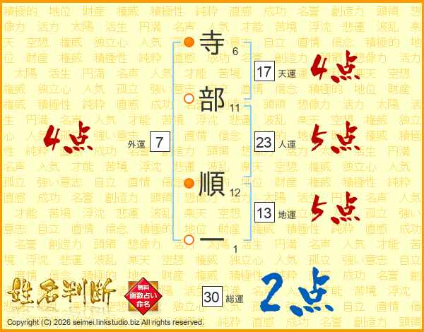 寺部順一さんの人運は23画の5点!