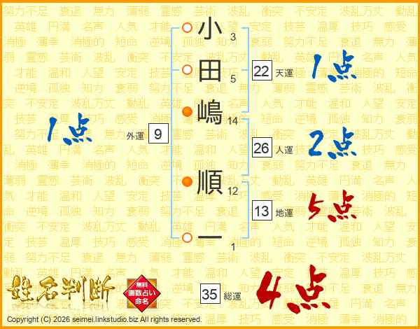 小田嶋順一さんの総運は35画の4点!