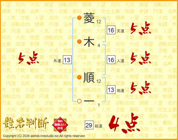 菱木順一さんの総運は29画の4点!