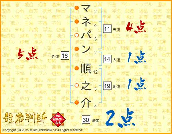 マ(2画)ネ(4画)パ(3画)ン(2画) 順(12画)之(3画)介(4画)