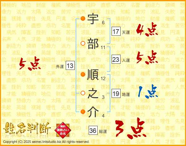 宇(6画)部(11画) 順(12画)之(3画)介(4画)