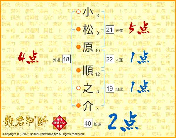 小(3画)松(8画)原(10画) 順(12画)之(3画)介(4画)