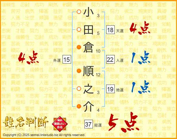 小(3画)田(5画)倉(10画) 順(12画)之(3画)介(4画)