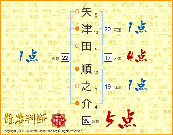 矢津田順之介さんの総運は39画の5点!