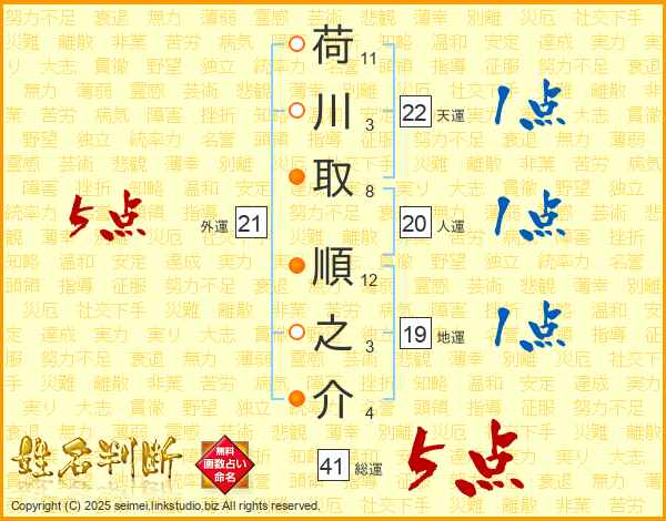 荷川取順之介さんの外運は21画の5点!