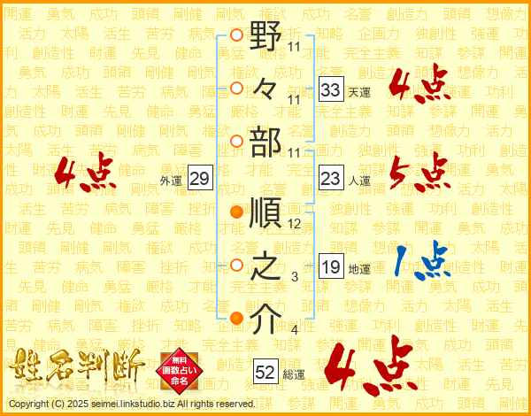 野(11画)々(11画)部(11画) 順(12画)之(3画)介(4画)