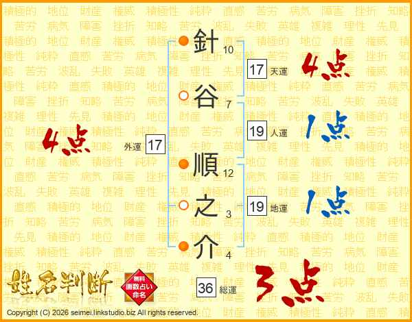 針谷順之介さんの外運は17画の4点!