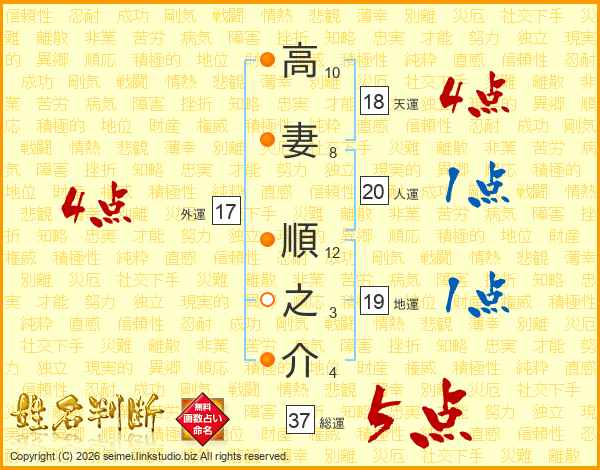 高(10画)妻(8画) 順(12画)之(3画)介(4画)