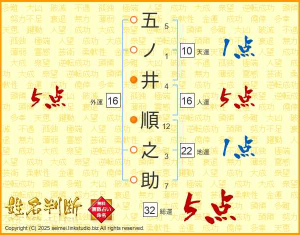 五ノ井順之助さんの外運は16画の5点!