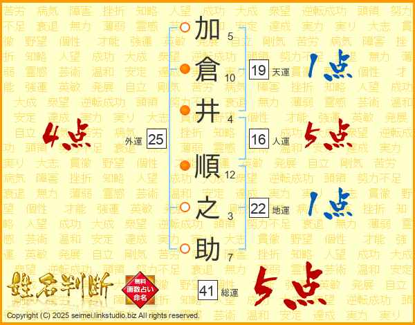 加倉井順之助さんの総運は41画の5点!