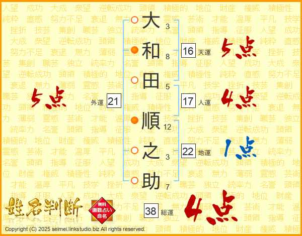 大和田順之助さんの総運は38画の4点!