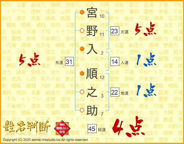 宮野入順之助さんの総運は45画の4点!