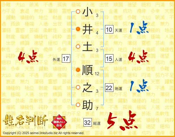 小(3画)井(4画)土(3画) 順(12画)之(3画)助(7画)