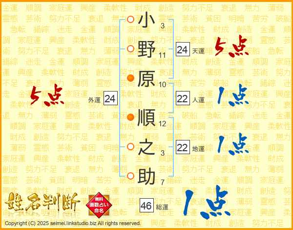 小(3画)野(11画)原(10画) 順(12画)之(3画)助(7画)