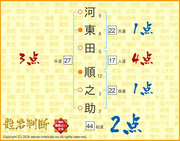河東田順之助さんの天運は22画の1点!