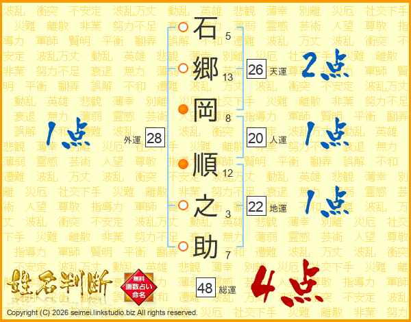 石郷岡順之助さんの総運は48画の4点!