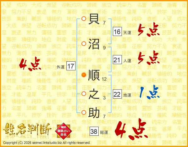 貝沼順之助さんの総運は38画の4点!