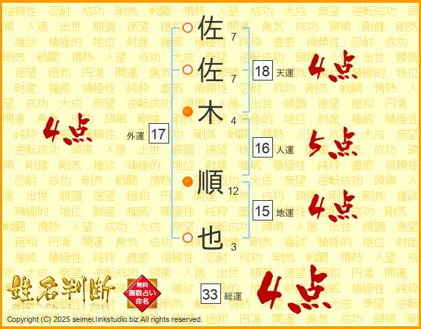 佐(7画)佐(7画)木(4画) 順(12画)也(3画)