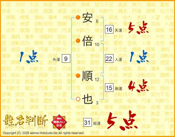 安倍順也さんの総運は31画の5点!