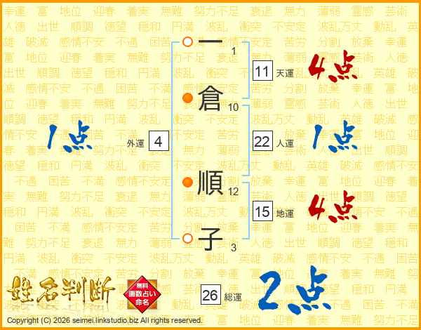 一倉順子さんの総運は26画の2点!