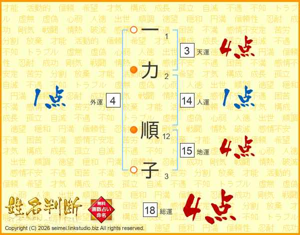 一力順子さんの総運は18画の4点!