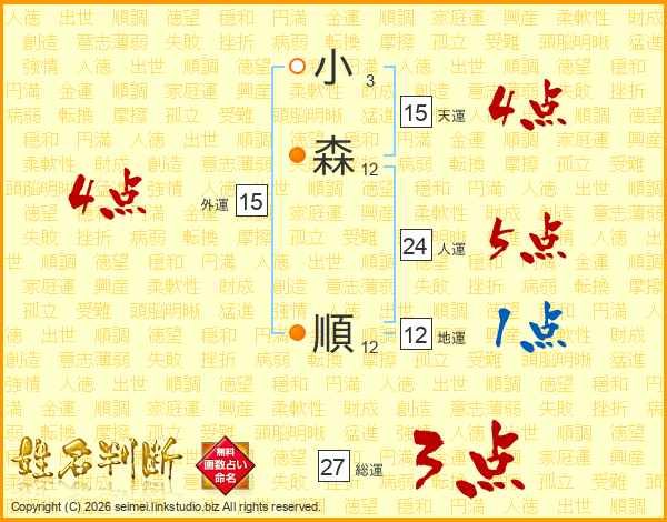 小(3画)森(12画) 順(12画)