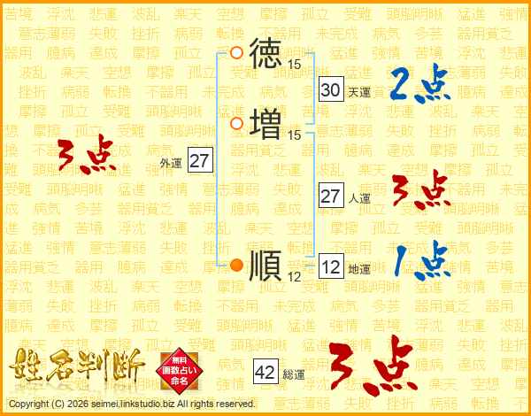 徳(15画)増(15画) 順(12画)