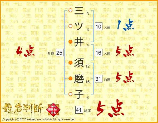 三(3画)ツ(3画)井(4画) 須(12画)磨(16画)子(3画)