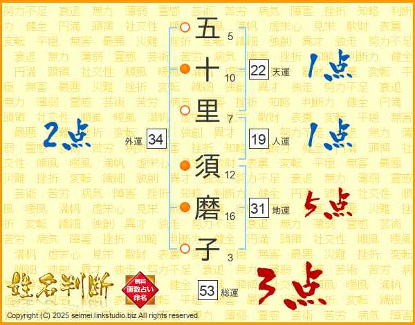 五(5画)十(10画)里(7画) 須(12画)磨(16画)子(3画)