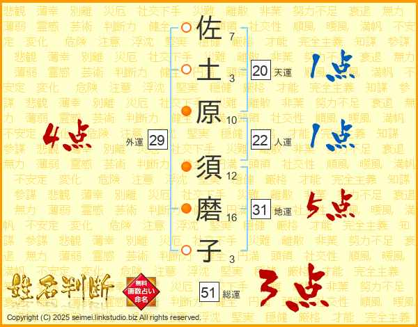 佐(7画)土(3画)原(10画) 須(12画)磨(16画)子(3画)