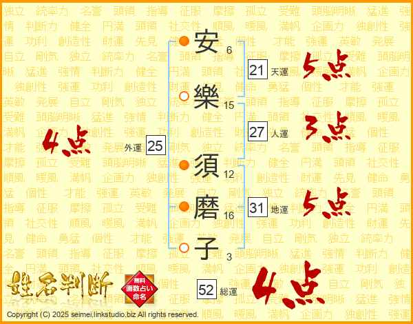 安樂須磨子さんの総運は52画の4点!
