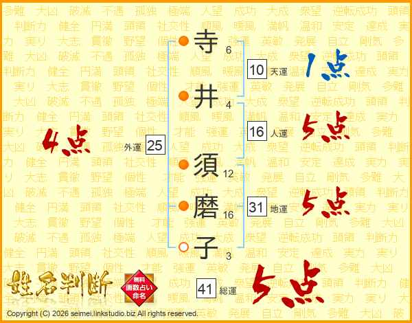 寺井須磨子さんの総運は41画の5点!