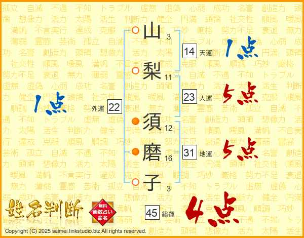 山(3画)梨(11画) 須(12画)磨(16画)子(3画)