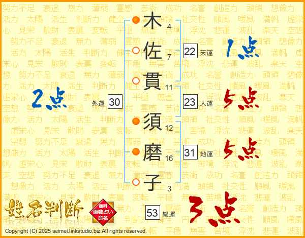 木佐貫須磨子さんの総運は53画の3点!
