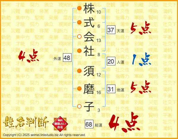 株(10画)式(6画)会(13画)社(8画) 須(12画)磨(16画)子(3画)
