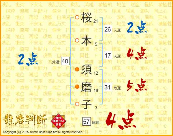 桜本須磨子さんの総運は57画の4点!